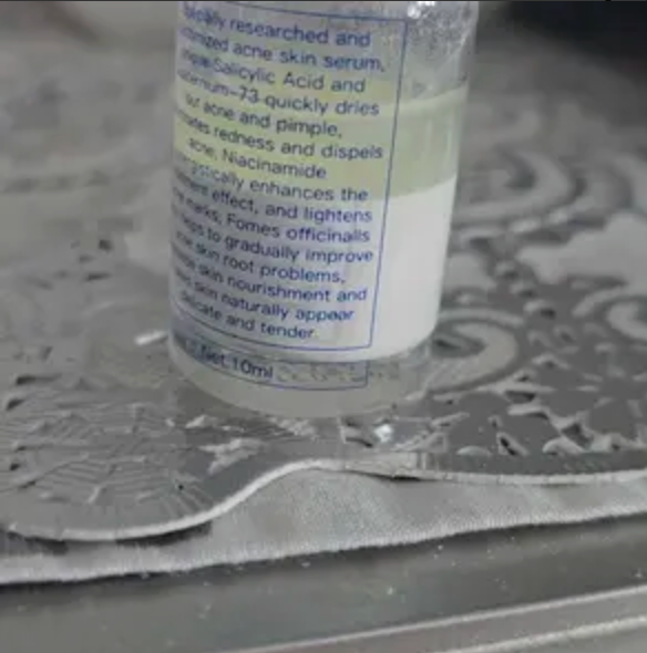 Spot Vanish uses a two phase formula: the white sediment at the bottom is the drying blend that actually targets the pimple. When applied, this white layer sits on the skin and works overnight to pull out excess oil, dry the spot, and reduce redness. The liquid on top keeps the formula gentle and helps it apply smoothly. Together, they shrink pimples fast and help calm irritation by morning.